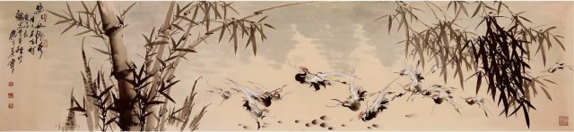陈秋光作品欣赏——《竹香鹤隐》300cm×70cm
