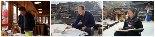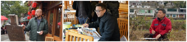 山东工艺美术学院中国画教研室副主任王鹏是第一次来到贵州,“这里独特的地理位置和人文特色深深地打动了我”,尤其是“感受到贵州的乡村振兴和社会发展,也了解了当地的风俗民情和历史变迁,通过画笔描绘出苗寨的美丽风光和苗族人民的勤劳智慧,真正践行美术为人民服务的宗旨,也加强了民族团结,筑牢中华民族共同体意识。”