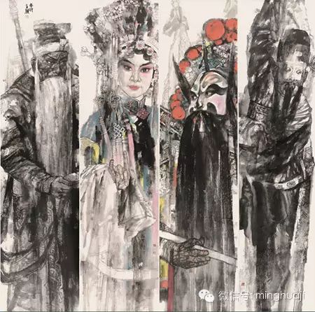 邹立颖《千秋舞台》,纸本水墨设色, 80*320cm*4 2011年
